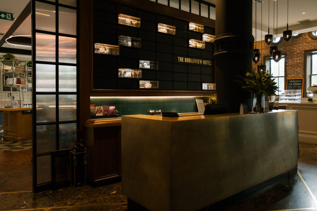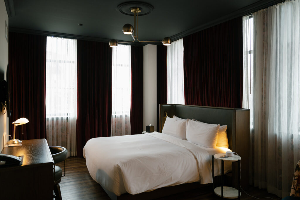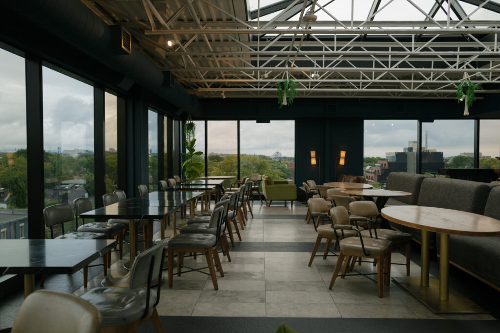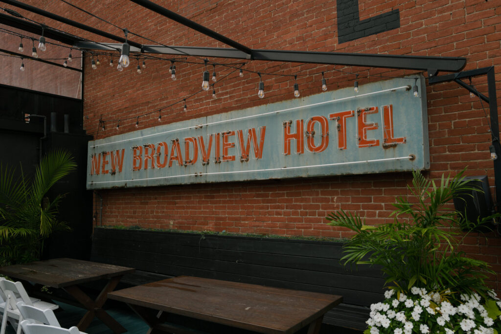 From a photography perspective, the Broadview is a dream. The rooftop terrace delivers panoramic cityscapes at golden hour, the Tower Room’s stained glass adds dramatic texture to portraits, and the brick façade provides a striking backdrop just outside the doors. In every season, there is a blend of modern editorial style and old-world character.