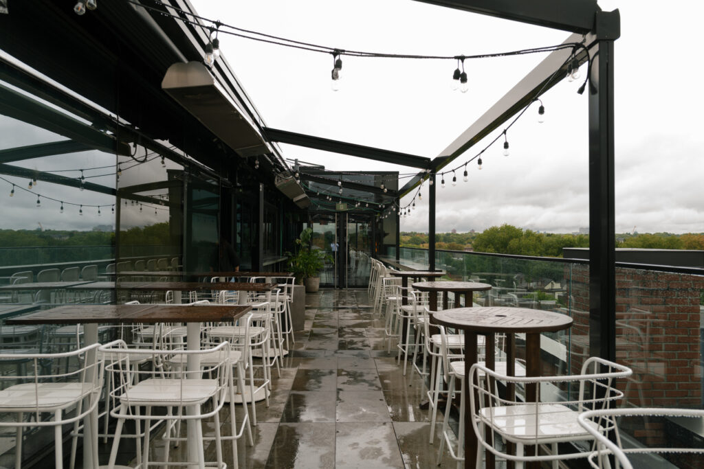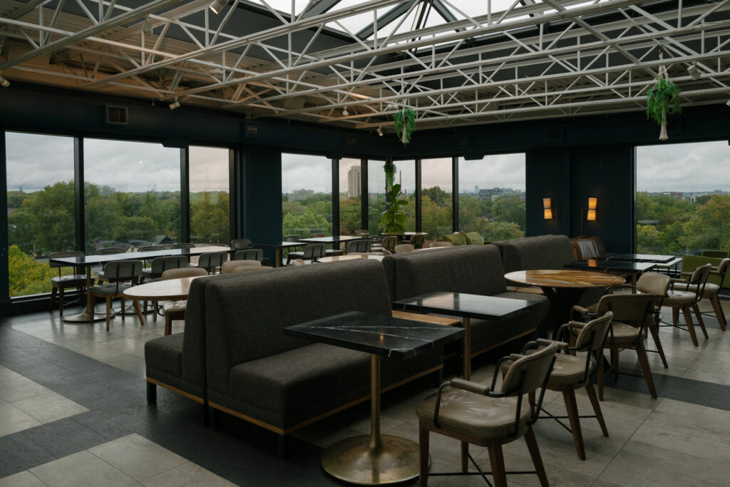 Reception Spaces: Indoor dining room (150 seated), rooftop terrace (350 standing reception)